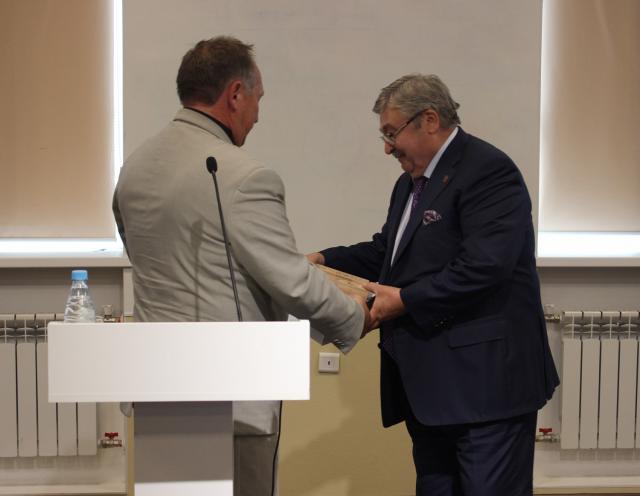 Пред началом заседания президент СПП СПб Анатолий Александрович Турчак вручил Благодарность Российского Союза промышленников и предпринимателей президенту Ассоциации хлебопеков Санкт-Петербурга Александру Сергеевичу Зорину.