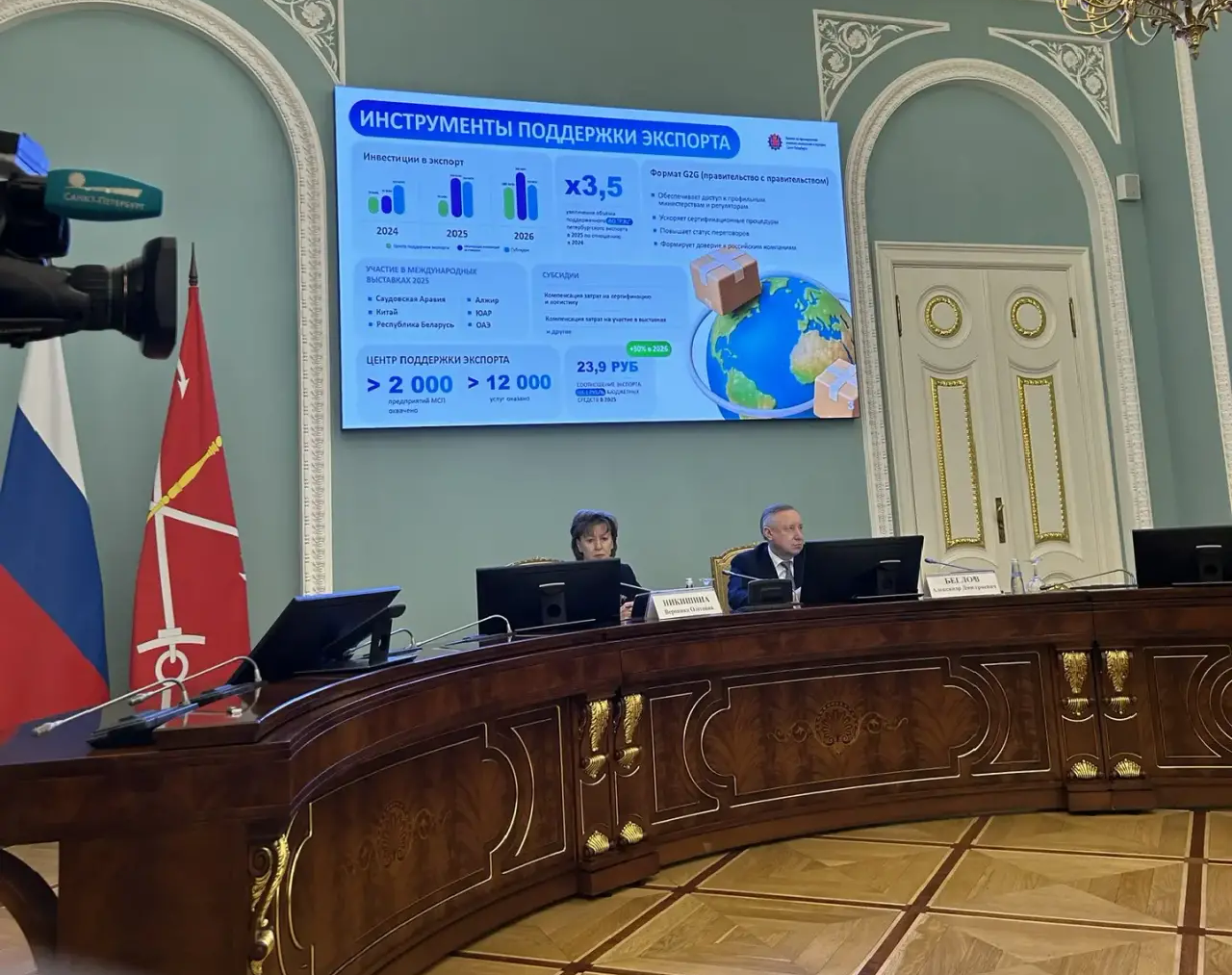 Александр Беглов отметил, что Петербург продолжает расширять перечень мер поддержки экспортёров, создаёт для них новые стимулы, увеличивает финансирование действующих программ, по запросам компаний дополняет перечень субсидируемых затрат.