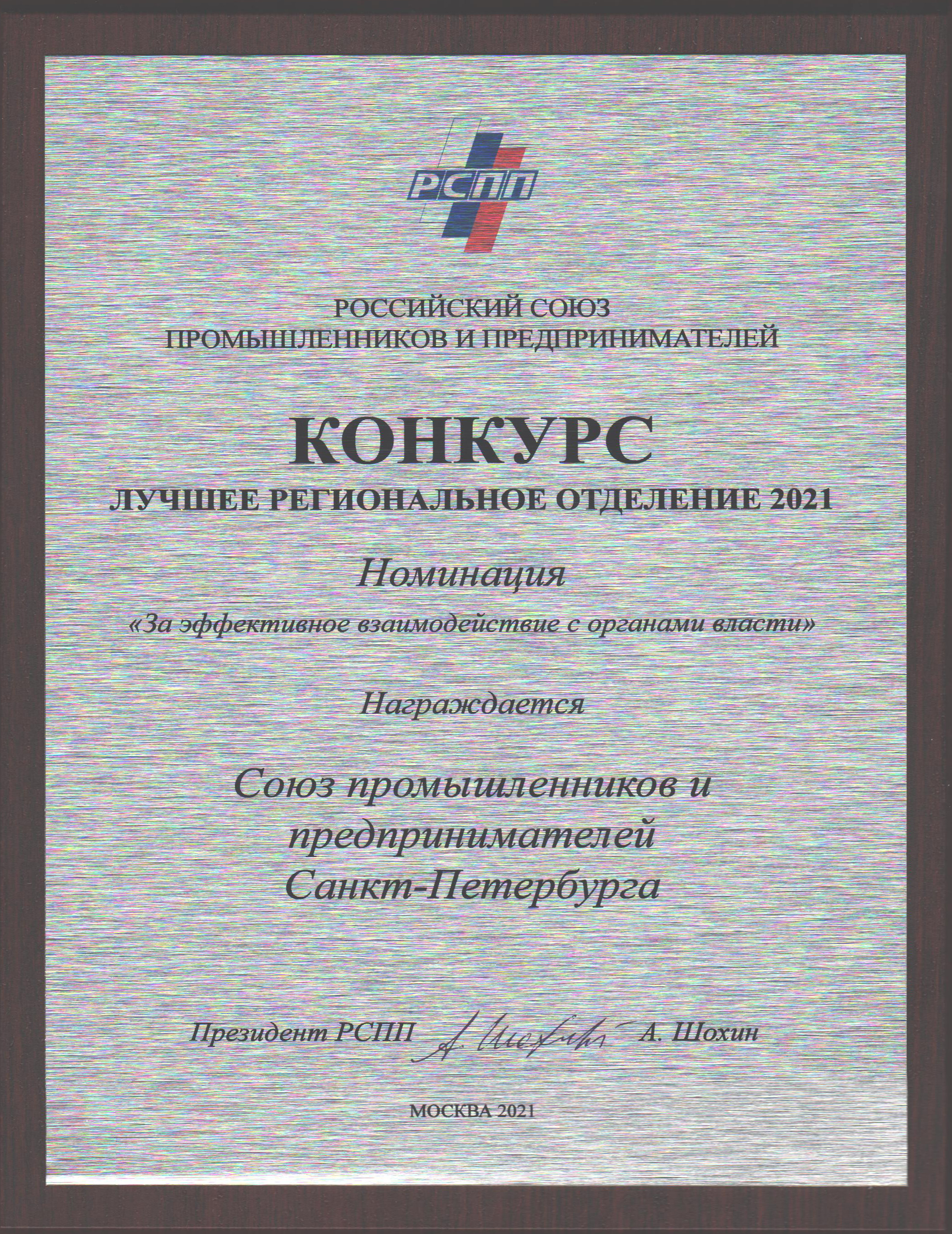 НАГРАДЫ СОЮЗА ПРОМЫШЛЕННИКОВ И ПРЕДПРИНИМАТЕЛЕЙ САНКТ-ПЕТЕРБУРГА