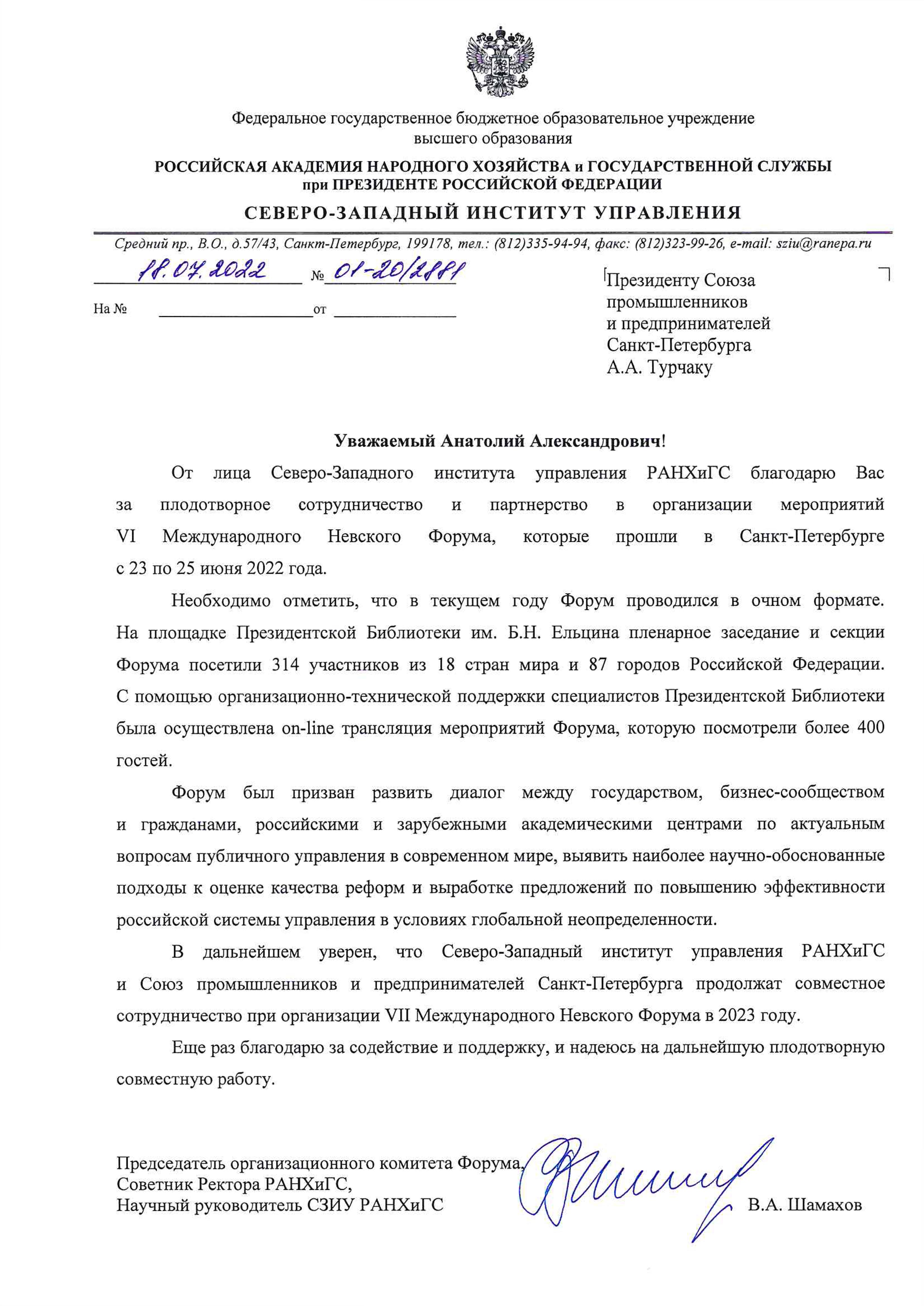 Акционерное общество «Невский завод» выразили благодарность СПП СПб за содействие по вопросу установки светофора
